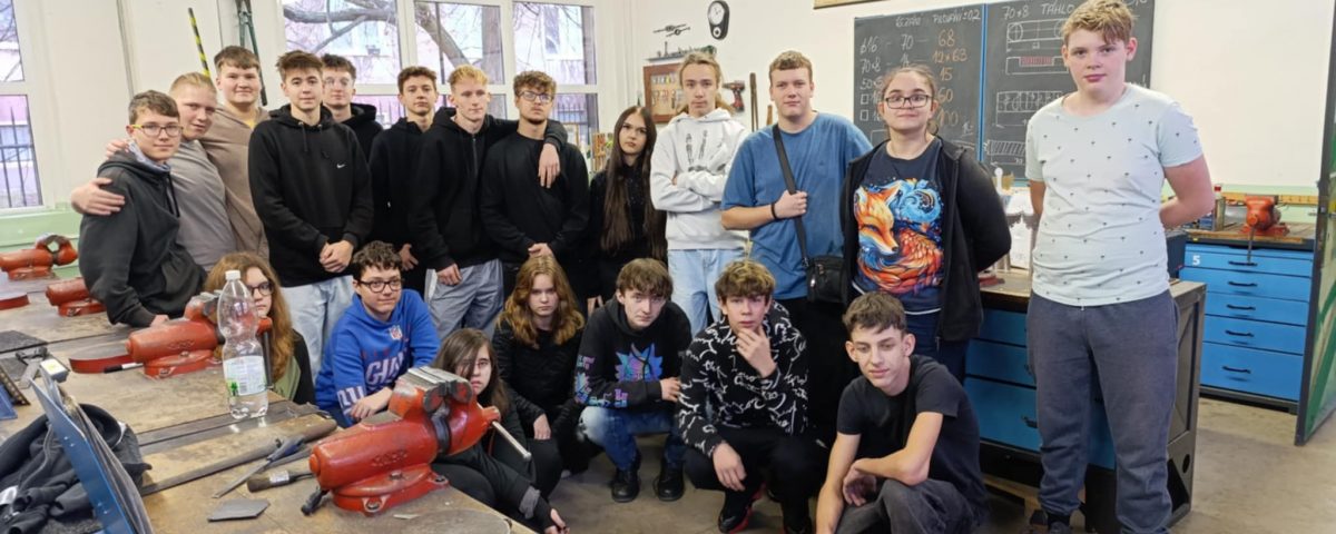 Dnes jsme v našich  kovo dílnách, v rámci projektu Implementace dlouhodobého záměru- Ústecký kraj, Řemeslné dny, uvítali návštěvu z 13. základní školy Harmonie Chomutov. Žáci se přišli podívat a hlavně zkusit si vyrobit hrací kostku nebo přívěšek. Všichni žáci, včetně pedagogického doprovodu, prokázali výbornou zručnost a poznání, že byť práce může na začátku vypadat velmi jednoduše realita je zcela jiná.