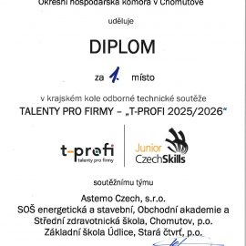 V rámci výstavy probíhala i krajská soutěž Talenty pro firmy (T-profi) je zaměřena na podporu a popularizaci techniky a technických profesí u dětí a mládeže. Účastníci soutěže si otestovali svoji zručnost, digitální znalosti, schopnosti komunikace mezi vrstevníky, ale i s dospělými. V letošním roce bychom rádi pogratulovali našemu zástupci Martinovi Domáňovi, který se umístil na úžasném prvním místě.